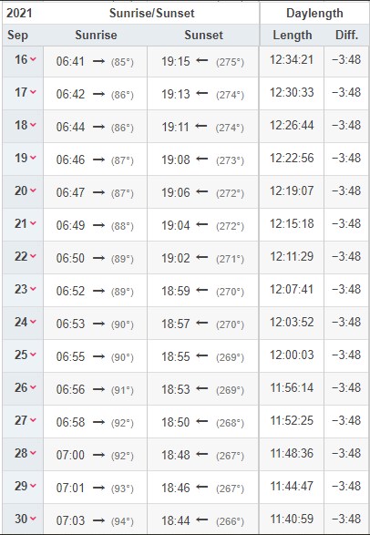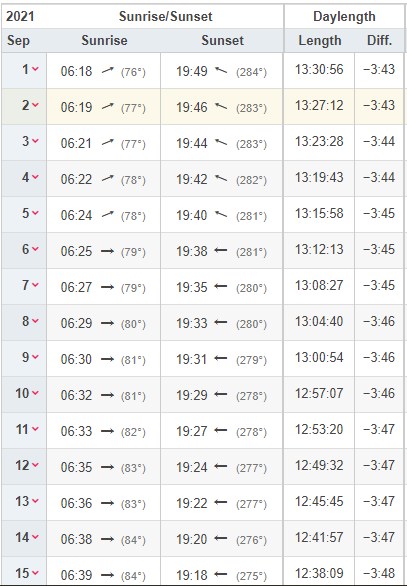 Sunrise and Sunset in Portsmouth during September